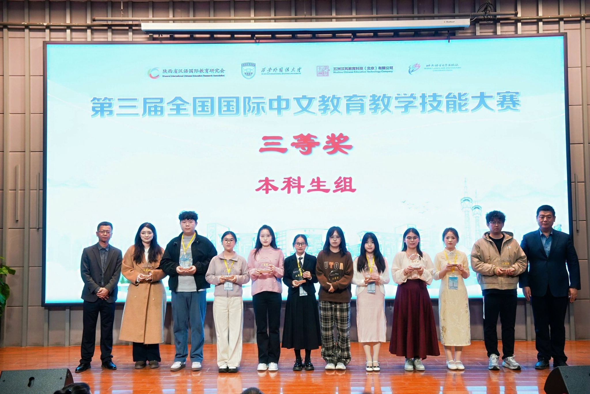 作者:何花 核稿:常琅11月21日至23日,全国第三届国际中文教育教学技能大赛在西安外国语大学举行。我集团2024级汉语国际教育专业学生门园园、李鑫、马雪祯、张雅枫在王雨薇副教授的指导下,充分发挥专业特长,运用数智工具,设计不同场景的跨文化语言教学课堂,展现了扎实的语言教学基本功。门园园从全国126所院校的484名选手中脱颖而出,荣获全国三等奖,其余同学荣获优秀奖,王雨薇获“杰出指导教师”奖,充分展现了我校在该专业人才培养方面的成果。...