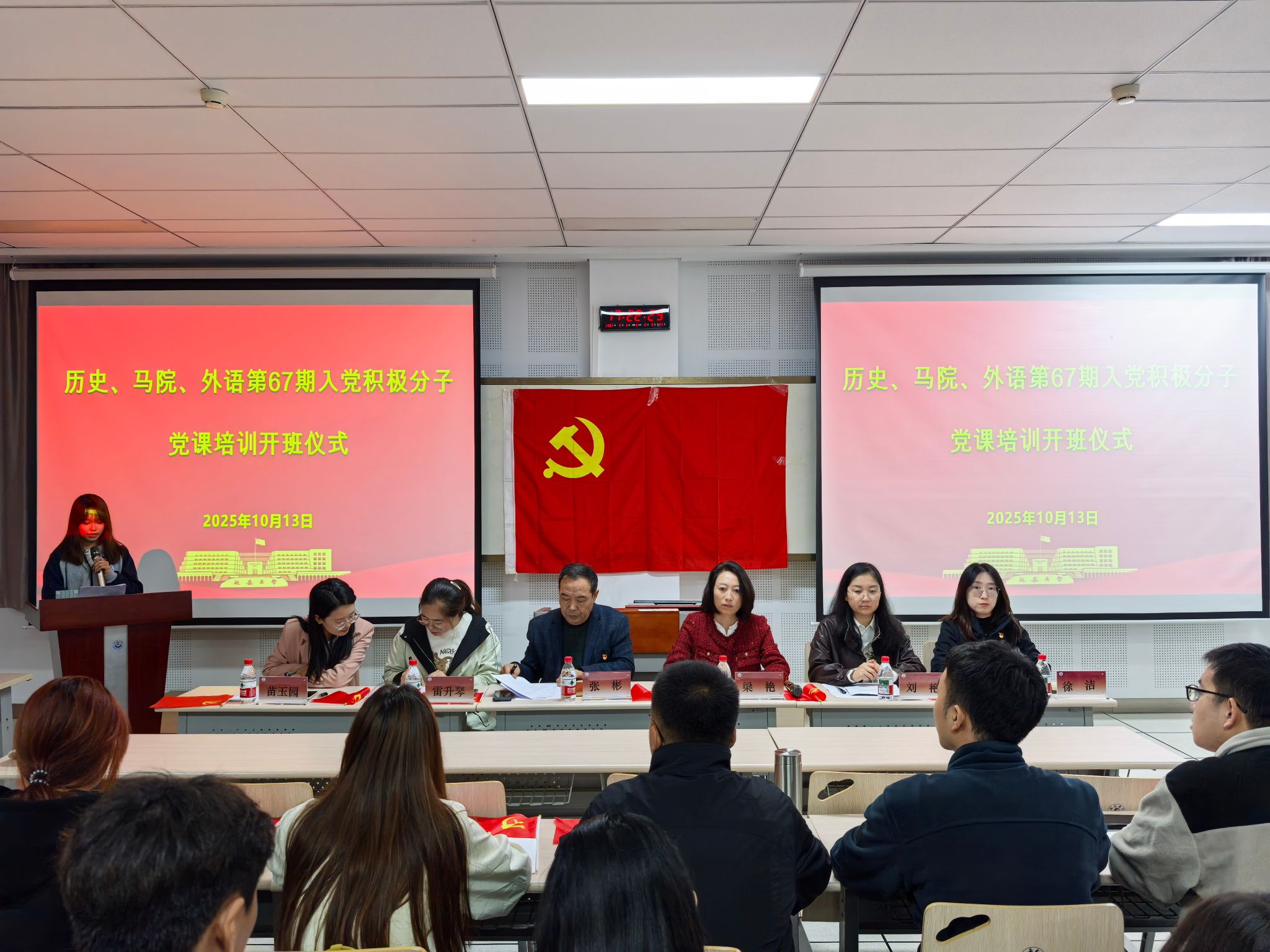 2025年10月13日晚,太阳集团tyc5997,马克思主义学院,历史文化学院分党校第67期入党积极分子培训班开班仪式在外语楼211教室庄严举行。太阳集团tyc5997党委书记梁艳,马克思主义学院党委书记张彬,历史文化学院党委副书记刘艳,太阳集团tyc5997组织员徐洁,马克思主义学院组织员苗玉园,历史文化学院组织员雷升琴以及95名参训学员共同出席了仪式。仪式由太阳集团tyc5997党委书记梁艳主持。