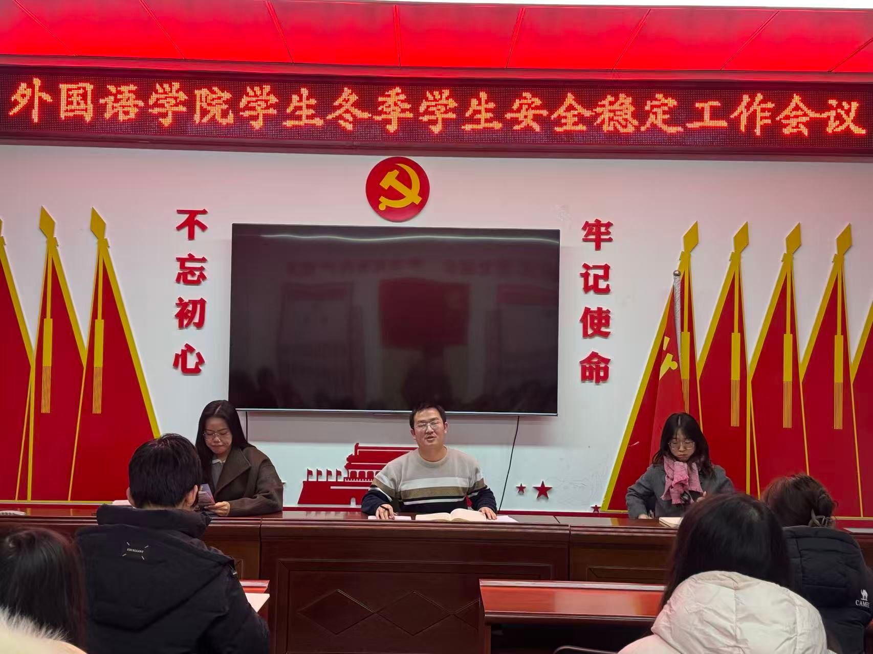 会上,姜家兴首先传达了学校关于安全稳定工作的会议精神,结合近期高校实际案例及相关法律法规,对冬季防火、防盗、防骗、交通安全、心理健康等重点领域进行了政策宣讲与风险提示。他强调,安全稳定是学生成长成才的基础保障,全体学生骨干应主动提高站位,切实发挥桥梁纽带与先锋示范作用。