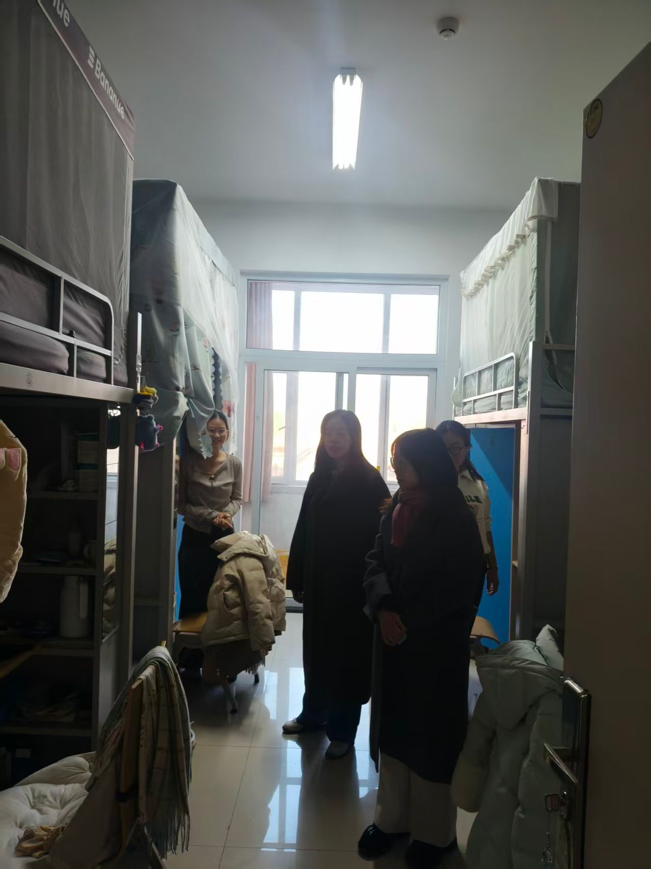 当日下午,学院组织辅导员及学生干部代表深入学生宿舍,开展冬季安全专项检查。检查重点围绕违规电器使用、线路安全、消防通道畅通等情况展开,并对发现的问题进行现场提醒与记录,后续将督促整改,切实消除安全隐患。