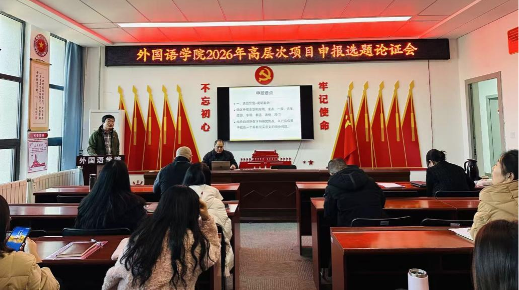 为扎实推进2026年度国家社科基金等高级别科研项目的申报工作,切实提升学院教师的选题质量与申报竞争力,2025年12月15日下午,我集团在外语楼513会议室召开了2026年高层次项目选题申报专家论证会。会议特邀我校文学院杨绍固教授担任指导专家,学院科研副院长王会刚主持会议,拟申报2026年度高层次项目的20余位教师参加了本次论证会。