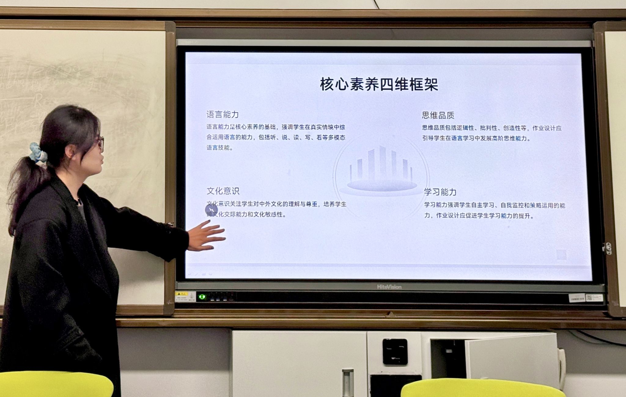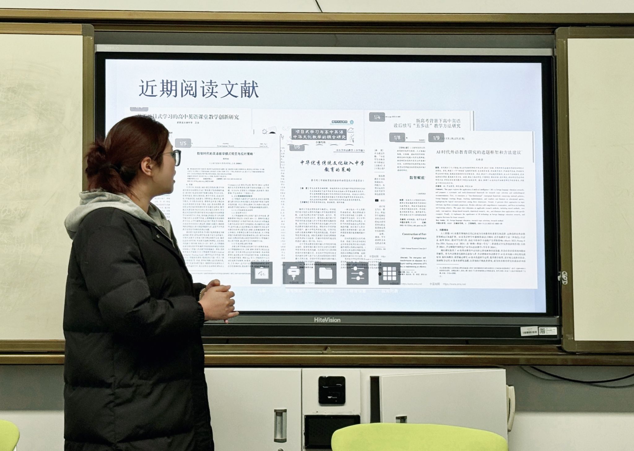 2025级研究生罗叶椰、刘孟汇报了入学以来的学习进展,包括系统梳理中小学英语教学热点文献、参与学术会议、研读教材与参与实践研学等活动。同学们展现出良好的学术积累与实践意识,导师组鼓励大家持续深化理论素养,加强交流协作,逐步将理论学习转化为科研产出。