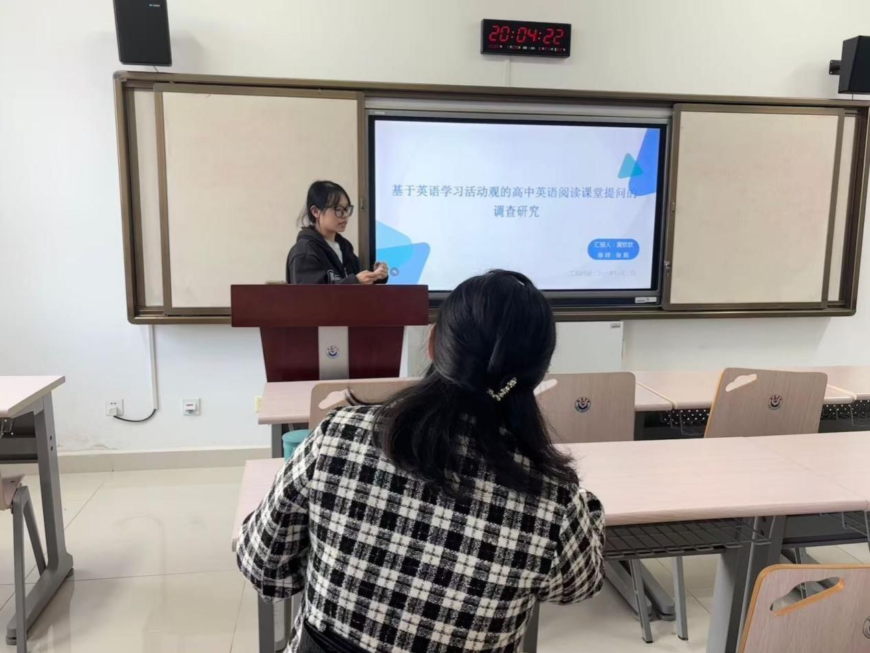 在研二学生开题预汇报环节,张佳宁、黄钦钦等五位同学进行学位论文开题预汇报。张佳宁、黄钦钦围绕《多元识读教学法在高中英语阅读教学中的应用研究》和《基于英语学习活动观的高中阅读课堂提问的调查研究》为题汇报。导师组建议张佳宁需先明确核心研究问题,优化问题表述的逻辑性和针对性;在研究工具选取上,要注重适配性,尤其需关注调查问卷的题项设计合理性与维度划分科学性,确保调研数据的有效性。建议黄钦钦明确研究对象的具体范围,避免研究边界模糊;同时深入思考 “英语学习活动观” 与 “课堂提问” 二者的内在联结逻辑,论证其结合研究的可行性与合理性。